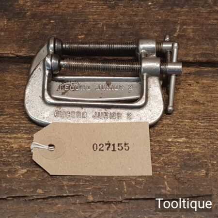 Vintage pair of Record chrome finished 2” junior G Clamps, ready for use and in good used condition.