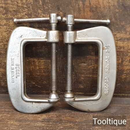 Vintage pair of Record Junior No: 2 ½ Nickel plated “G” cramps in good used condition.