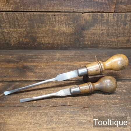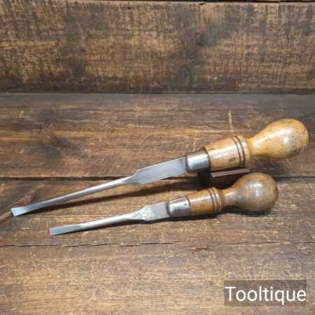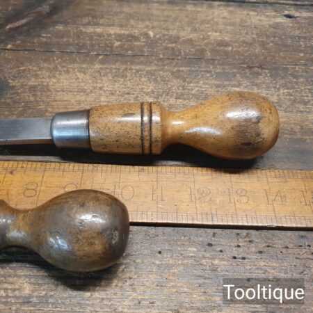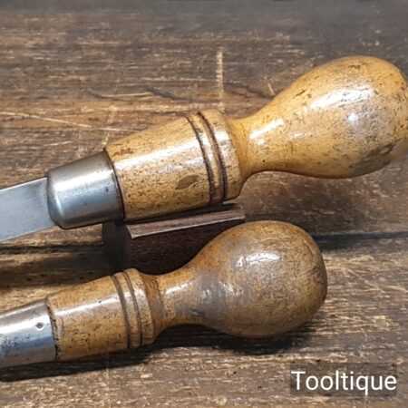 Vintage pair of Sheffield made Turnscrew screwdrivers with beechwood handles 10” + 14” long in good used condition, ready for use.