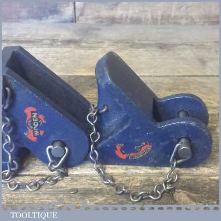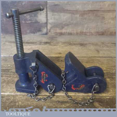 Vintage pair of Woden sash clamp heads with original decals in good used condition.
