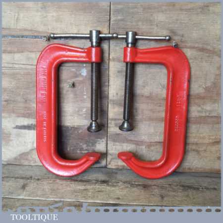 Vintage pair of Record 121-8” engineer’s heavy duty ‘G’ clamps in good used condition.