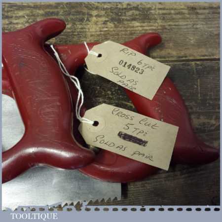Vintage Pair of Sandvik 23” cross cut and Rip handsaws fully refurbished and sharpened ready for use. 5 tpi and a 23” rip saw with 6 tpi crosscut saw both sharpened and jointed breasted.