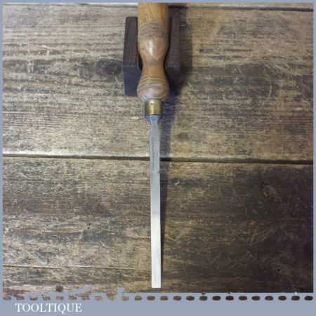 The chisel has been checked to ensure the tang is seated properly and the handle is solid and fit for use. All refurbished chisels are water cooled during the sharpening process to ensure the tempering is not affected. These old cast steel chisels are hand forged and far superior in quality because of the high carbon steel that was used which produces a keener edge, this was also generally used throughout the full length.