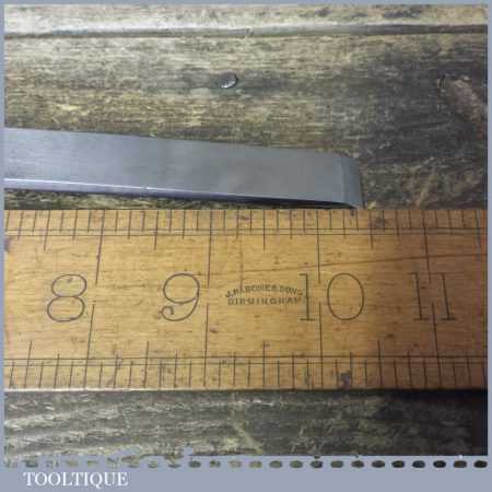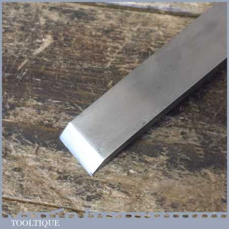 The chisel has been checked to ensure the tang is seated properly and the handle is solid and fit for use. All refurbished chisels are water cooled during the sharpening process to ensure the tempering is not affected. These old cast steel chisels are hand forged and far superior in quality because of the high carbon steel that was used which produces a keener edge, this was also generally used throughout the full length.