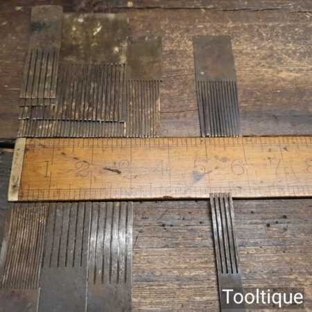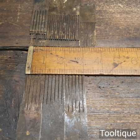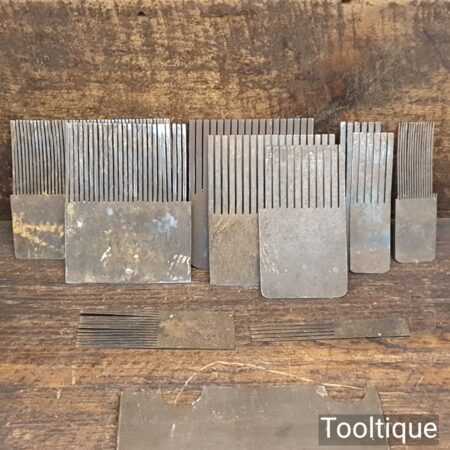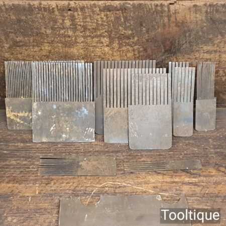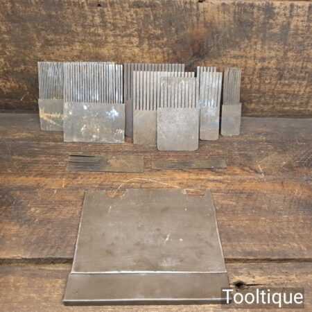 Vintage part set of 10 string steel graining combs in a metal box in good used condition