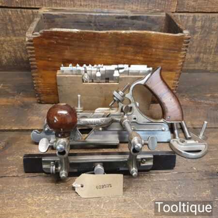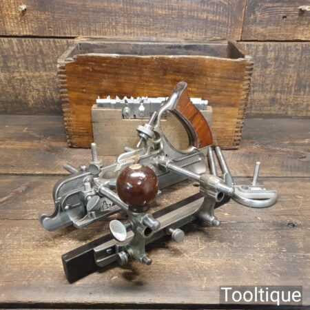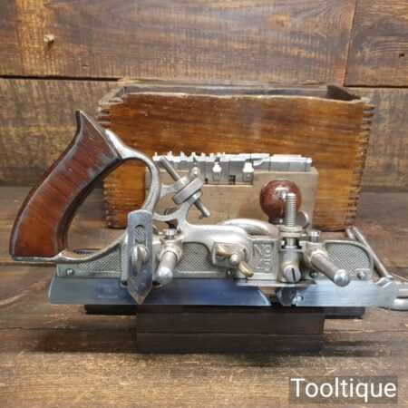 Vintage partially boxed Stanley Sweetheart, USA No: 45 combination plough plane complete with full set of cutters, fully refurbished ready for use and in good used condition. Note: We do not sharpen the irons. I cannot stress how important it is to buy these complete with the correct parts.
