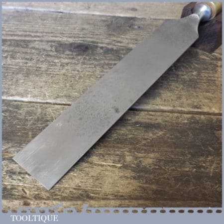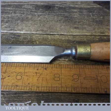 The chisel has been checked to ensure the tang is seated properly and the handle is solid and fit for use. All refurbished chisels are water cooled during the sharpening process to ensure the tempering is not affected. These old cast steel chisels are hand forged and far superior in quality because of the high carbon steel that was used which produces a keener edge, this was also generally used throughout the full length.