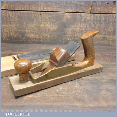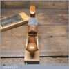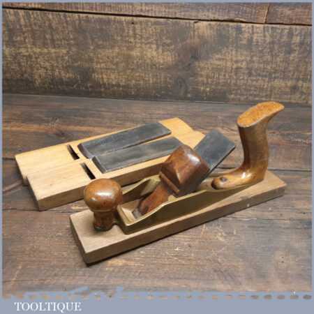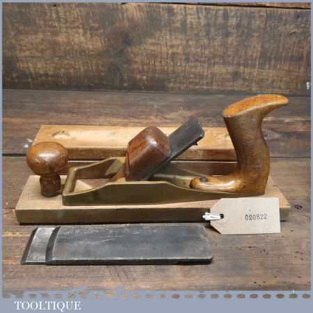 When refurbishing these old planes, we do not merely clean them to make them look good, they are restored to a level that ensures they are actually ‘in plane’, sharpened, honed and all the components are thoroughly cleaned so that they move freely. This plane has been specifically reconditioned to satisfy professional craftsmen who will instantly know the difference between buying one of our planes over general other used ones, whilst retaining as much originality as possible. This takes time and the correct set up to achieve good consistent results but is definitely worth the effort.