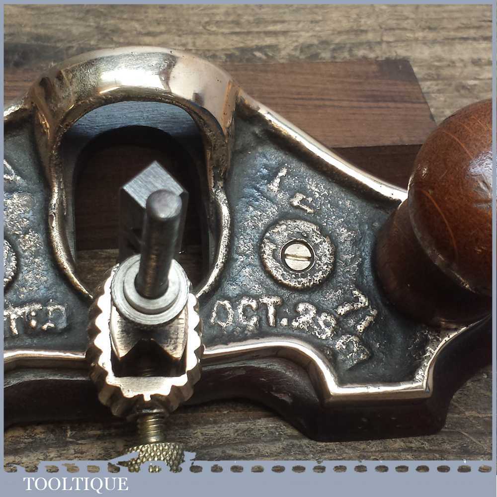 Pretty Vintage Pattern Makers Copy of a Stanley No: 71 router plane made in gunmetal with mahogany base. It works although the casting base is not perfect when the wood is removed however I have lapped this flat should it be used. It’s decorative that’s for sure and illustrates what pattern makers made for themselves for their trade.