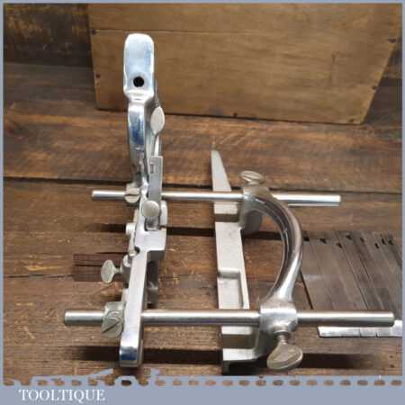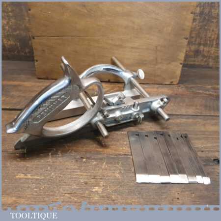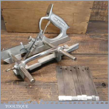 Vintage Pemuvar P44 plough plane complete with 10 cutters, fully refurbished and ready for use. The plane is in good condition and all components move smoothly. Note: We do not sharpen the irons