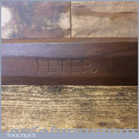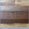 Vintage Peter’s 8” x 2” medium grit Carborundum oil stone in a wooden box in good used condition. Note: The stone has been lapped flat ready for use, with the name Peter carved into the lid.