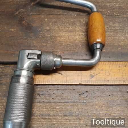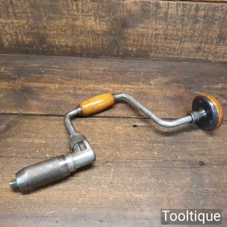 Vintage Pexto USA ratchet brace with beechwood handles and 10” swing in good used condition.
