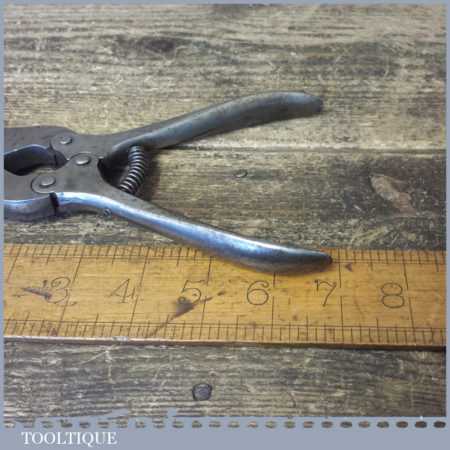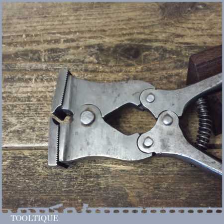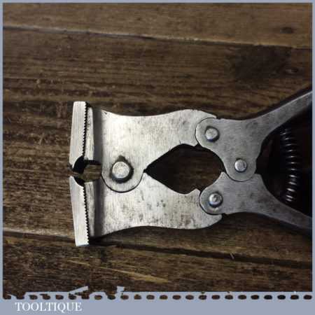 Vintage piano or music wire cutting pliers, the double action lever design and adjustable jaws mean these pliers will cut through braided wires no other tools will touch. Note: chipped on one edge but still very usable, hence price.