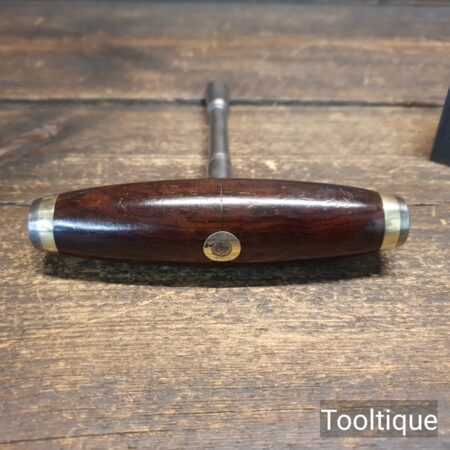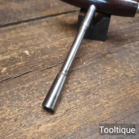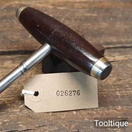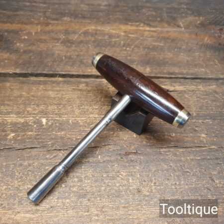Vintage Piano tuners T hammer tool with a ⁹⁄₃₂” square socket, it has an elaborate rosewood and brass, steel tipped handle in good used condition. Certainly, one of the nicest I’ve seen and probably 19th century