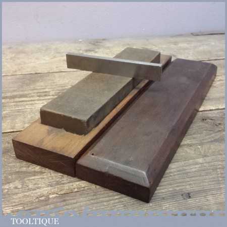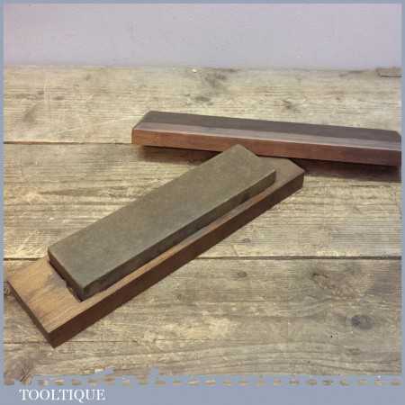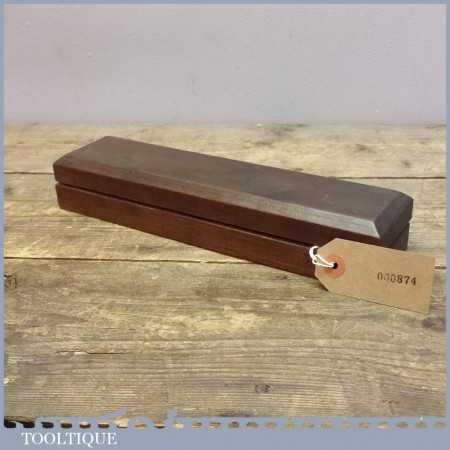 A vintage Washita oil stone in a pine box measuring approx 8” in length and 2” in width in good used condition. It’s an excellent natural honing stone to have as part of your kit.