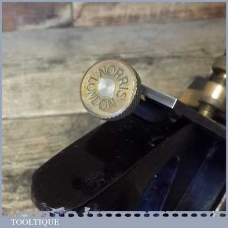 Vintage Post War Norris No: A1 17 ½” infill panel plane in good condition. The plane has most of its original lacquer and has seen little use and has a good long iron Norris / Sorby Iron. There are some blemishes and some small pit marks to the sole but nothing serious but overall, it’s a very nice plane.