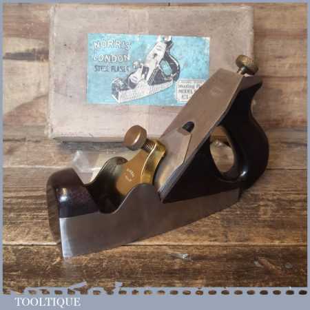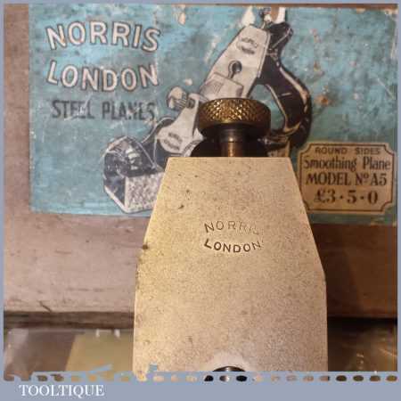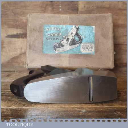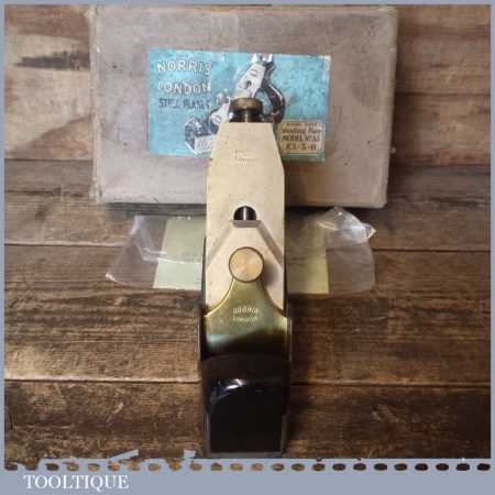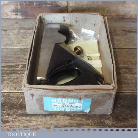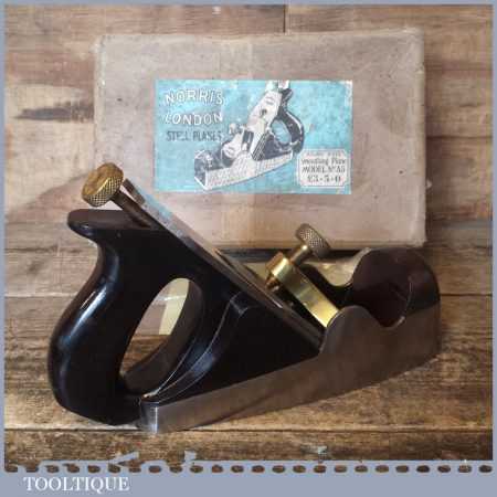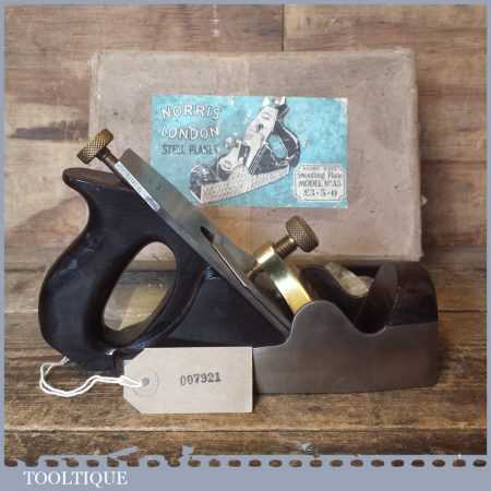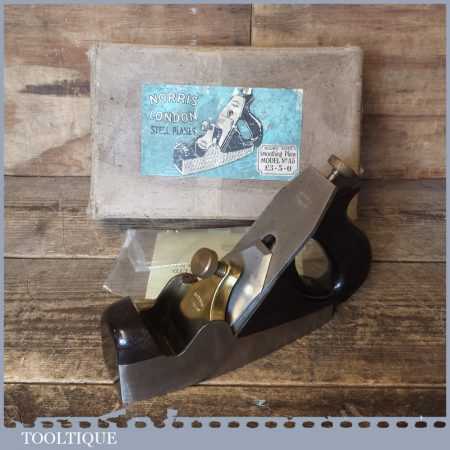 Vintage Post War Norris No: A5 infill smoothing plane in original box and in good condition. The plane has seen little use and has a good long original Norris iron. Overall, it’s a very nice plane original plane