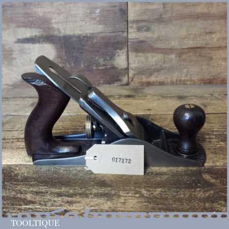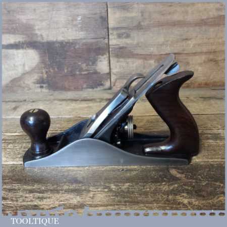 Vintage pre-war Stanley USA No: 4 smoothing plane with rosewood handles, fully refurbished ready to use and in good used condition. Note: Fitted with later Stanley, England iron and good solid repair to the tote.