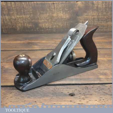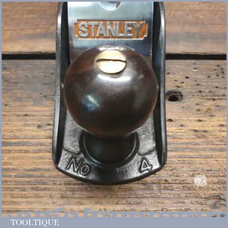 Vintage pre-war Stanley USA No: 4 smoothing plane with rosewood handles, fully refurbished ready to use and in good used condition. Note: Fitted with later Stanley, England iron.