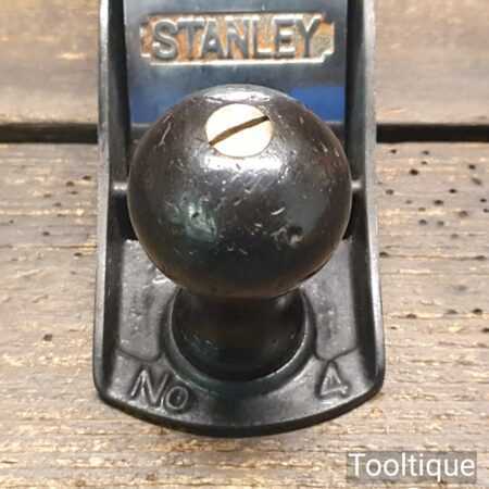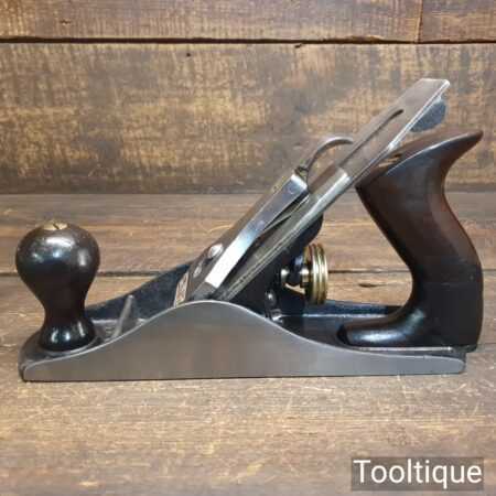 Vintage pre-war Stanley, USA No: 4 smoothing plane with rosewood handles, fully refurbished and in good used condition, ready to use. Note: Fitted with later Stanley, England iron, good solid and smooth repair to the tote.