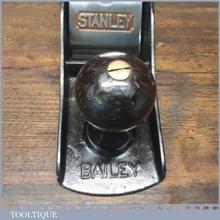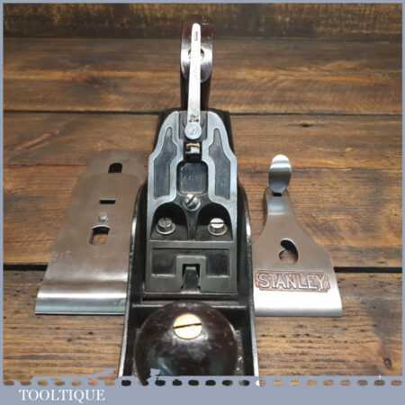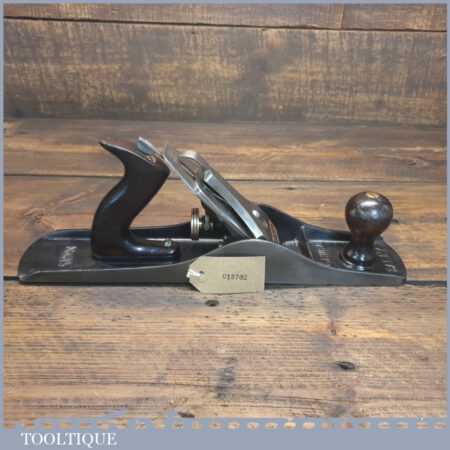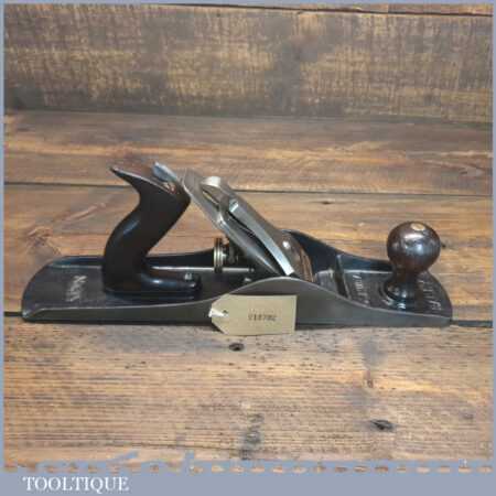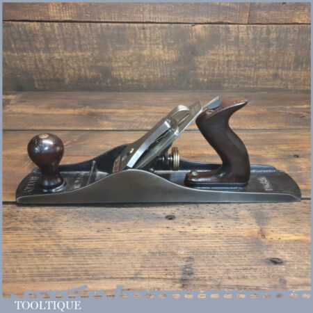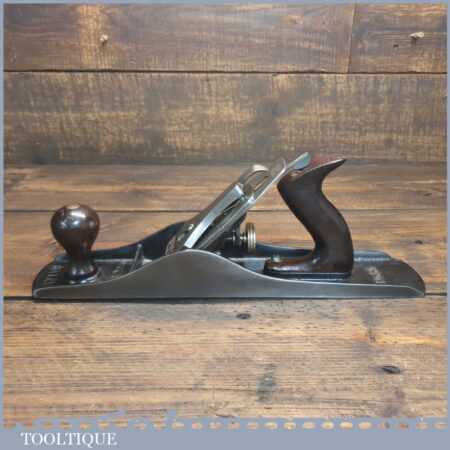 Vintage pre-war Stanley, USA No: 5 ½ fore plane with rosewood handles, fully refurbished ready to use and in good used condition. Note: Fitted with later Stanley, England iron. Note: Looks like the rear sides have been filed, probably chipped and made to look even.