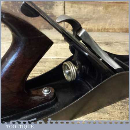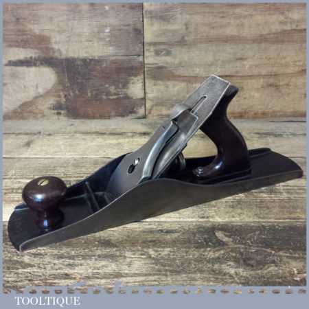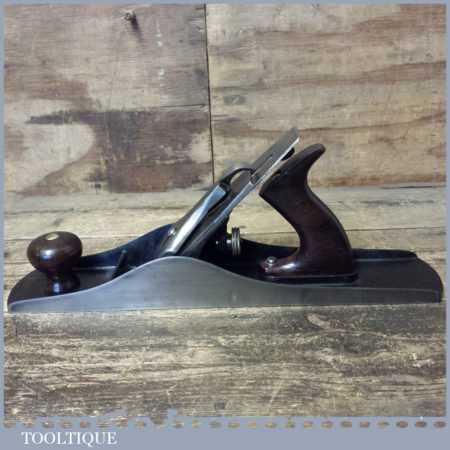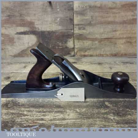 Vintage pre-war Stanley, USA No: 5 ½ low knob fore plane with original iron and rosewood handles, fully refurbished ready to use and in good used condition. This has a noticeably thicker sole than usual for this period approx ¼” thick and as such certainly adds to the plane. Possibly an early attempt at the notoriously rare H versions as this is heavy compared to others form this period.