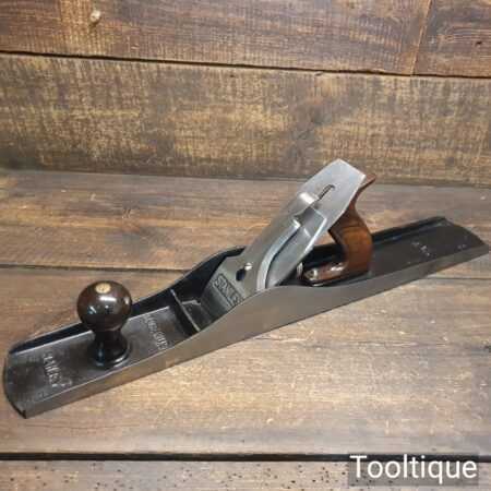 Vintage pre-war Stanley USA No: 7 jointer plane with original Stanley Sweetheart iron and rosewood handles, fully refurbished and in good used condition ready to use. When refurbishing planes, we do not merely clean them to make them look good, they are restored to a level that ensures they are actually ‘in plane to 0.05mm’ sharpened, fettled & honed and all the components are thoroughly cleaned so that they move freely. Our planes are specifically reconditioned to satisfy professional tradesmen who will instantly know the difference between buying one of our planes over general other used ones.