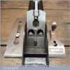 When refurbishing planes, we do not merely clean them to make them look good, they are restored to a level that ensures they are actually ‘in plane to 0.05mm’ sharpened, honed and all the components are thoroughly cleaned so that they move freely. Our planes are specifically reconditioned to satisfy professional tradesmen who will instantly know the difference between buying one of our planes over general other used ones.