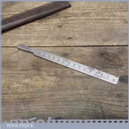 Vintage precision engineers tapered measuring gauge used for fabrication purposes. Has a small nick to the thin end but still works well in its original leather case.