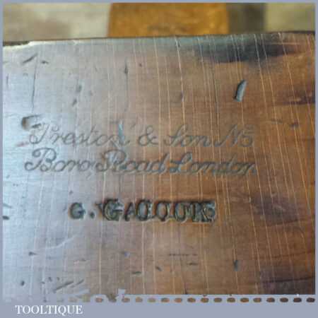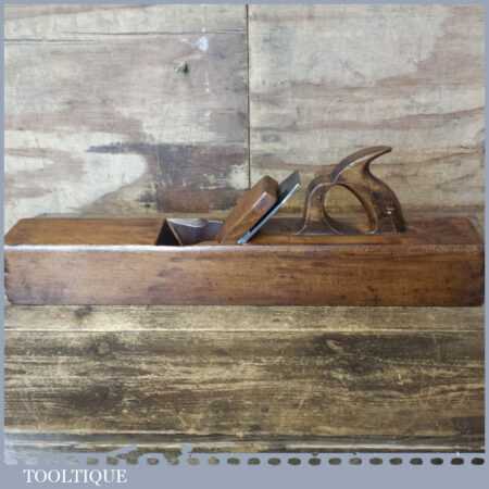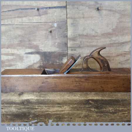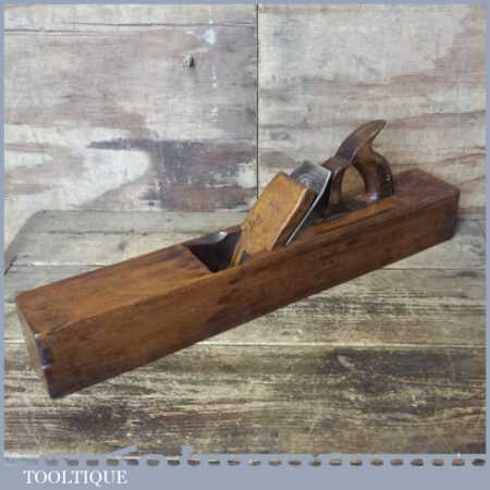 Vintage Preston & Son, 5 Boro Rd, London carpenter’s 22” beechwood trying plane in good used condition. Lapped flat and sharpened ready for use. Note: Odd random worm holes (Treated) but nothing that will affect its use.