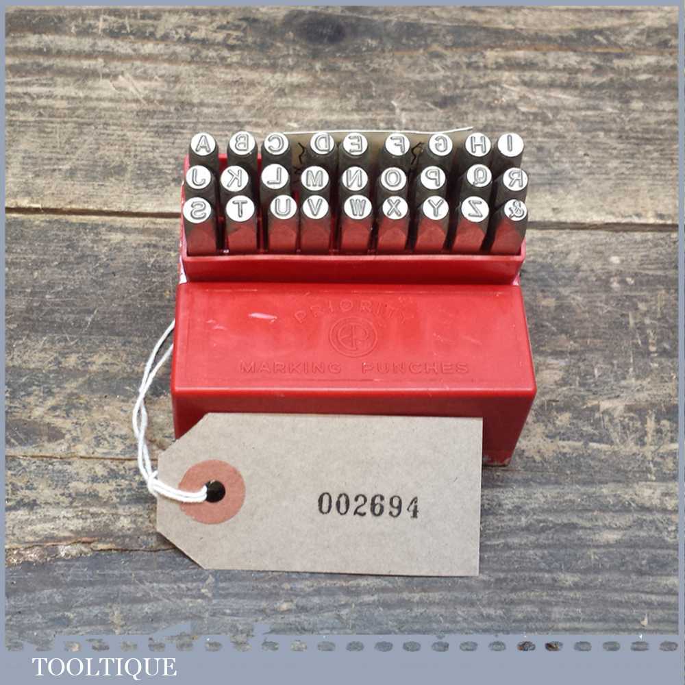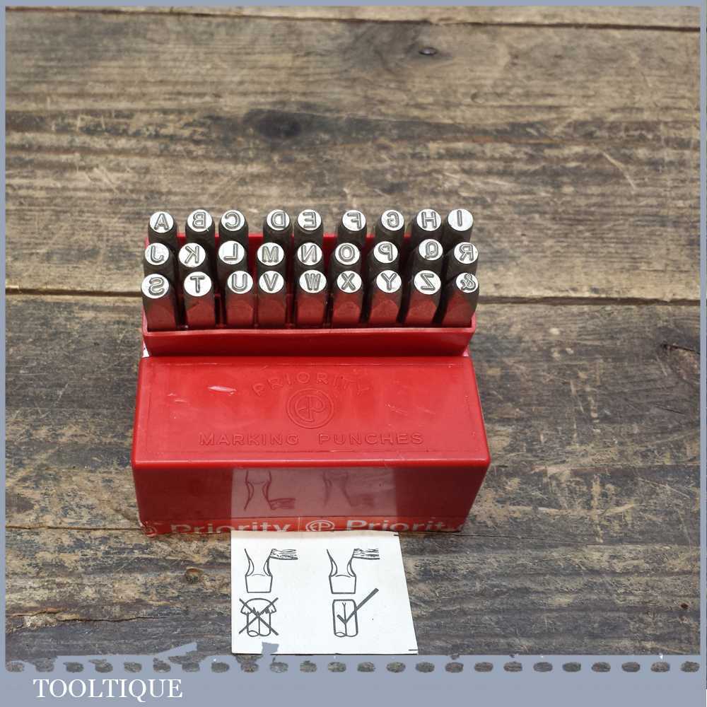 Vintage Priority 3mm A-Z letter marking stamp punch tools in very good lightly used condition.