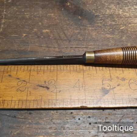 Vintage R. Olarke ⁵⁄₃₂” woodcarving straight veiner gouge chisel with beechwood handle in good used condition, fully refurbished sharpened and honed ready for use.