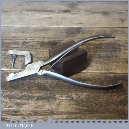 Vintage R. Timmins & Sons leatherworking hole punch pliers in good used condition.
