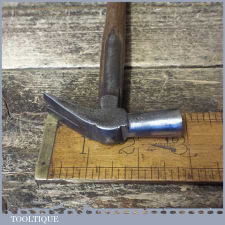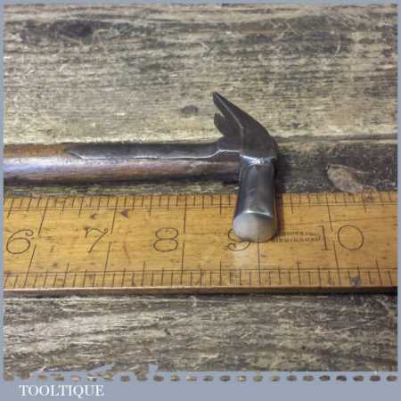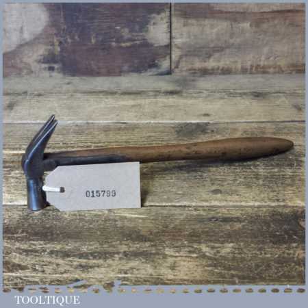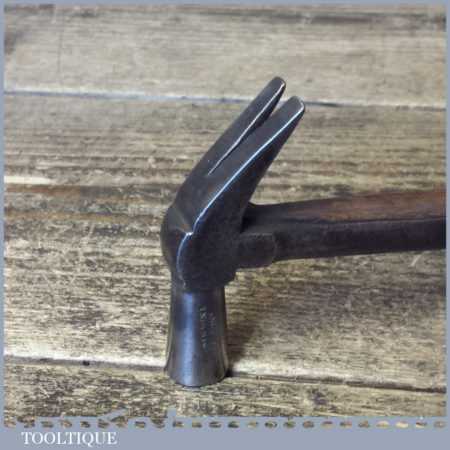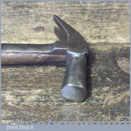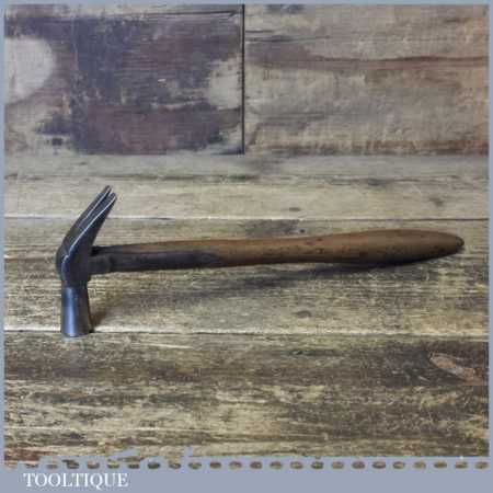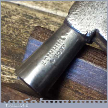 Vintage R. Timmins & Sons leatherworking strapped tack claw hammer with bulbous wooden handle, in good used condition.