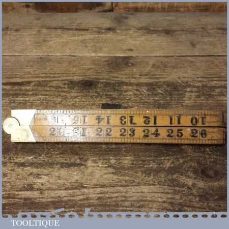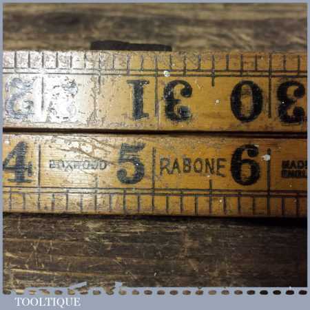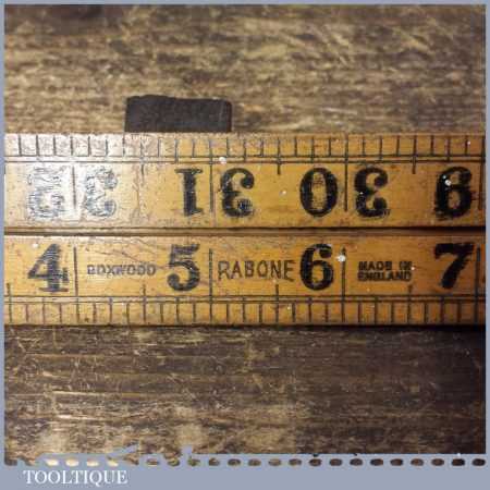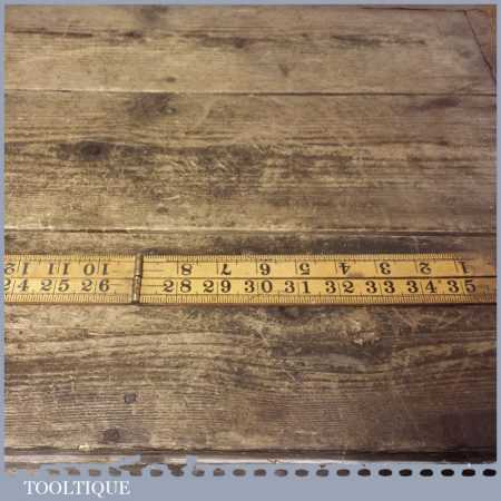 Vintage Rabone 36” boxwood and brass folding ruler in good used condition.