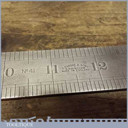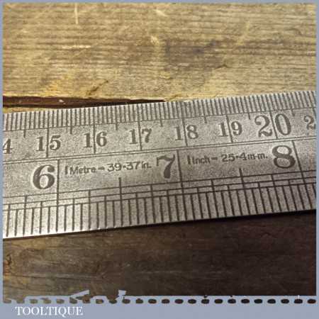 Vintage Rabone and sons double sided imperial & metric 24” steel ruler, marked No: 41 and is in good used condition. Certainly rulers for life as they are inscribed markings which are nice and clear.