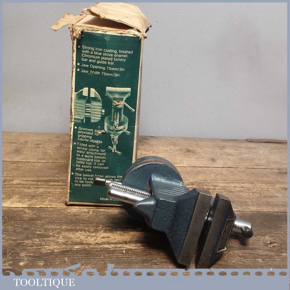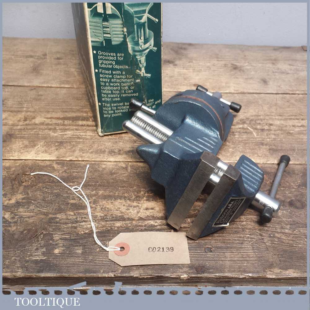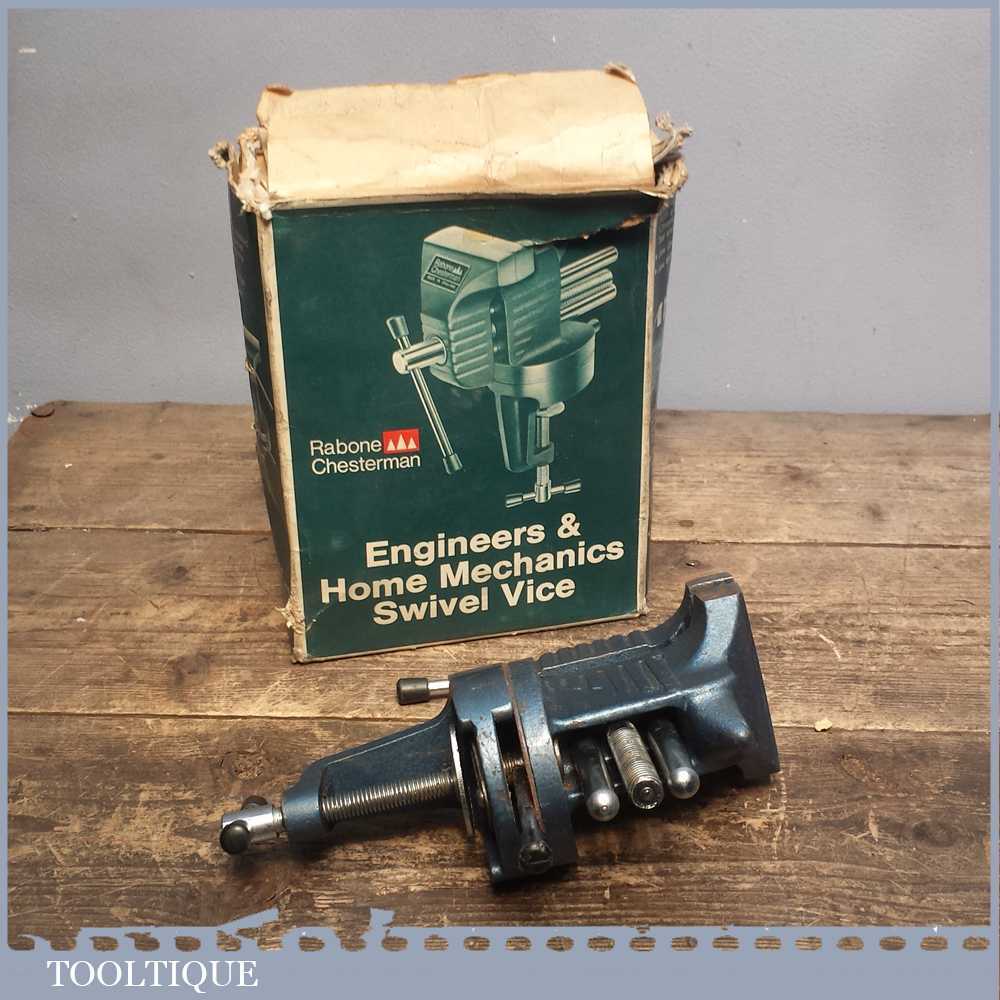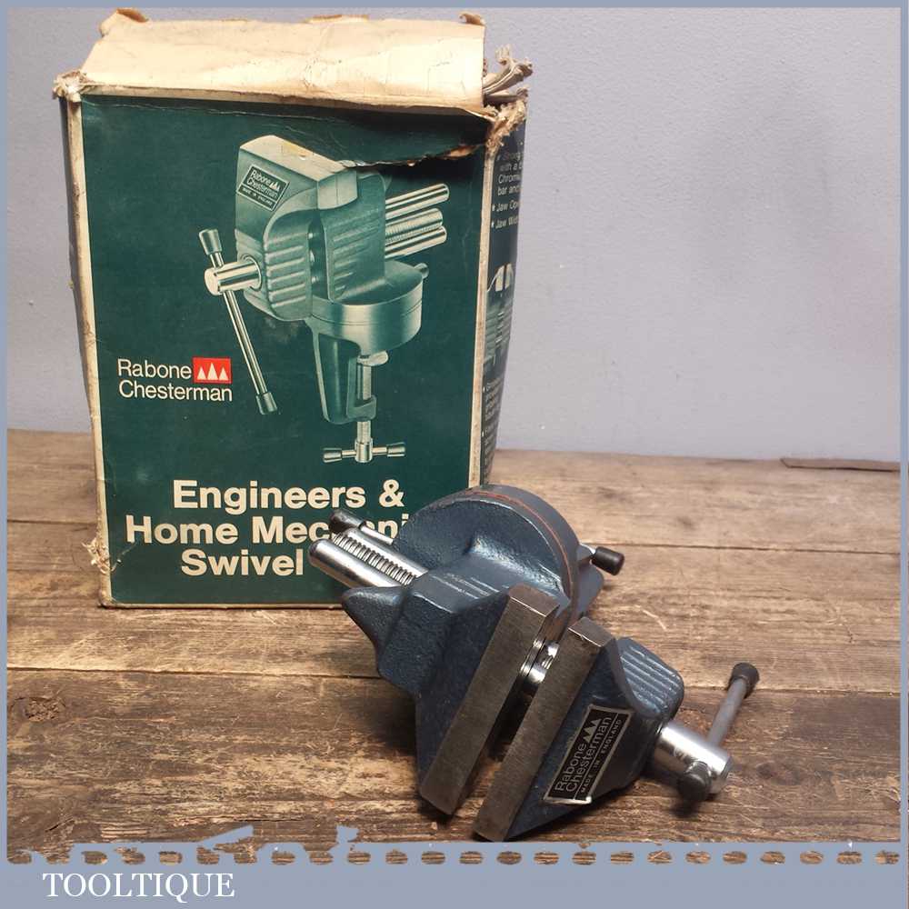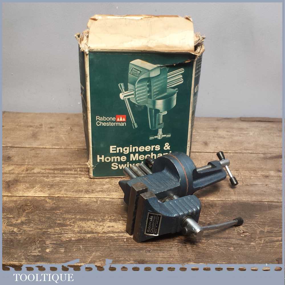 Vintage Rabone Chesterman 3” jaws & opening swivelling engineers vice which clamps to a table and perfect for small hobby work.