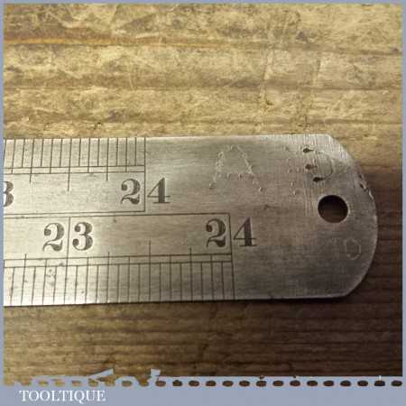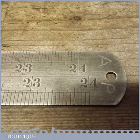 Vintage Rabone Chesterman double sided imperial 24” steel expansion ruler No: 721 in good used condition. Certainly rulers for life as they are inscribed markings which are nice and clear.