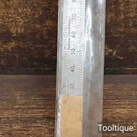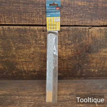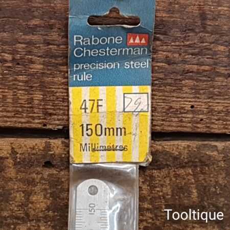 Vintage Rabone Chesterman No: 47f 150mm metric steel ruler in its original packaging in good used condition.