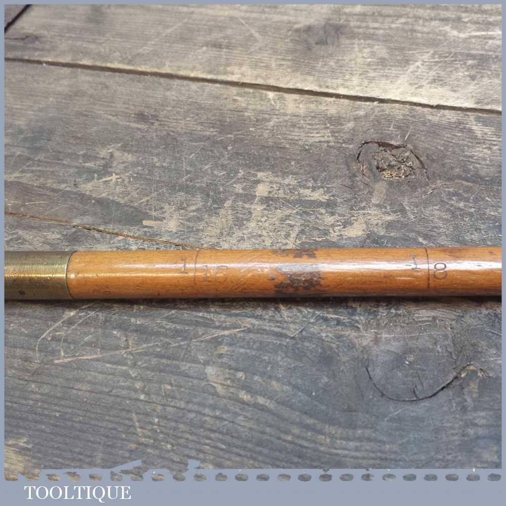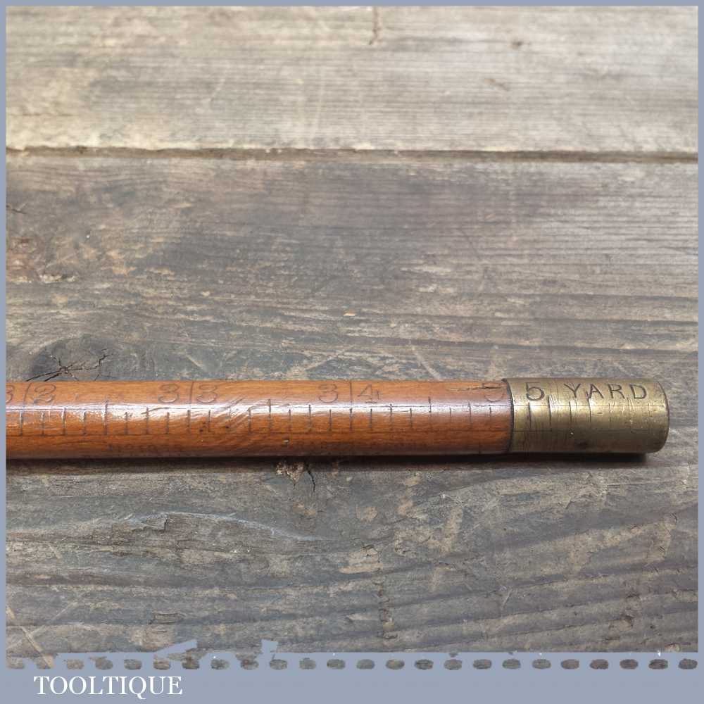 Vintage Rabone No: 1035 Langwood and brass tipped Yardstick in good used condition. Note: these are rarely straight and this is no exception, markings every inch and every 1/16 of a yard.
