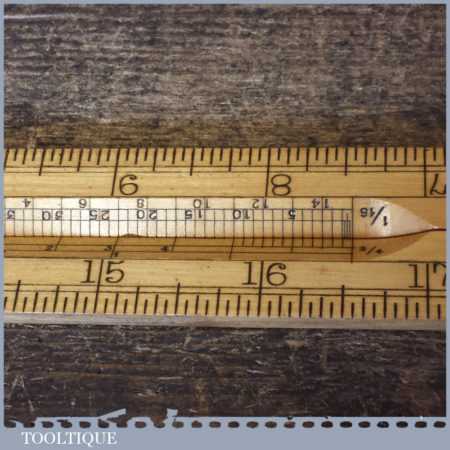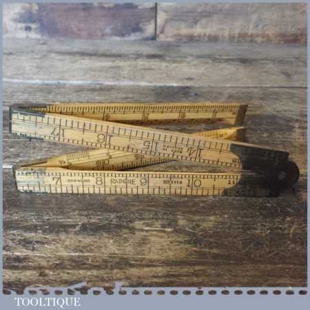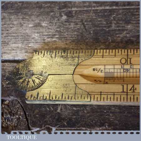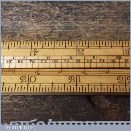 Vintage Rabone No: 1119 boxwood and brass 24” architects folding rule or caliper gauge in good used condition.