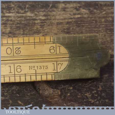 Vintage Rabone No. 1375 boxwood and brass folding ruler in very good used condition.