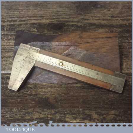 Vintage Rabone No. 1465 imperial boxwood and brass caliper ruler in good used condition.