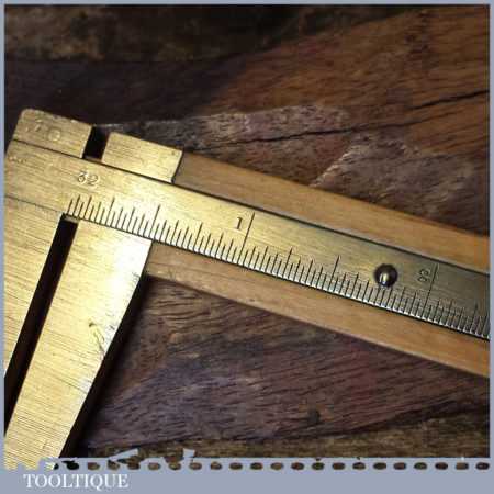 Crisp vintage Rabone No: 1465 imperial boxwood and brass caliper ruler in good used condition.