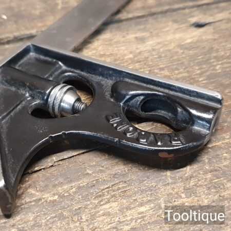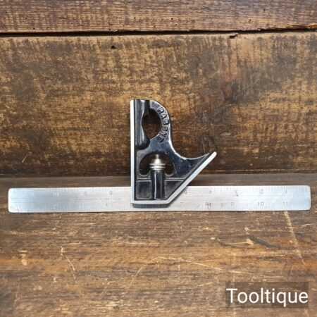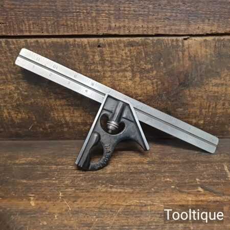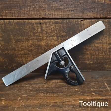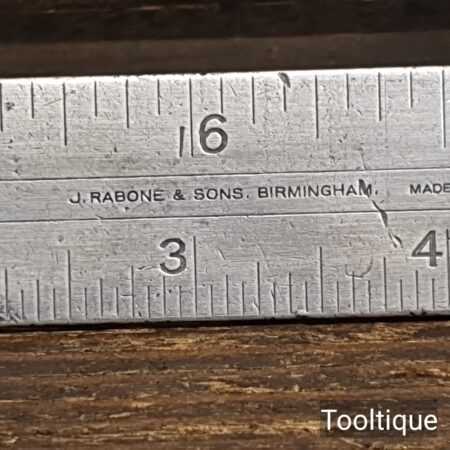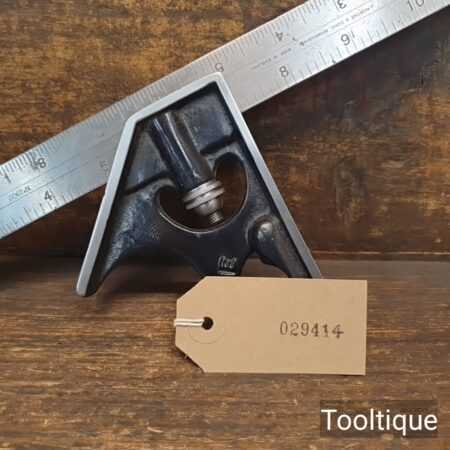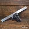 Vintage Rabone No: 1902 adjustable set square refurbished ready for use and in good used condition. Note: Adjusts and works well as an adjustable square but has some wear to the steel rule corners and spirit level bubble missing. See images.
