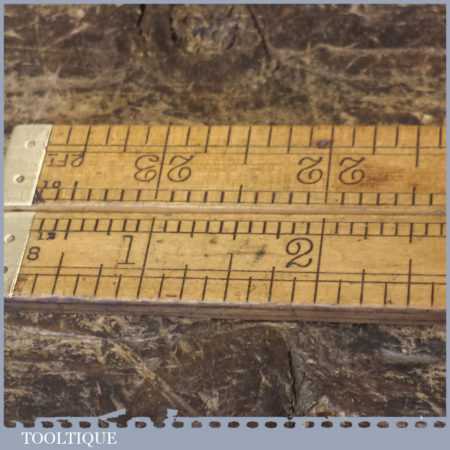 Vintage Rabone No: 2550 folding boxwood 24” ruler with chamfered edge, in good used condition.