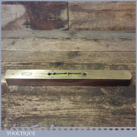 Vintage John Rabone & Sons 12” rosewood and brass spirit level in good used condition. Note: the level has not been tested and may require resetting in putty if intended for use.