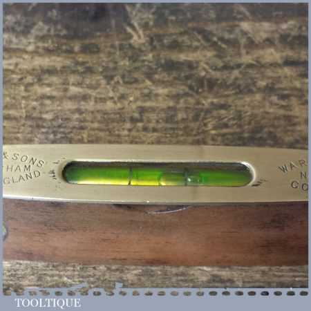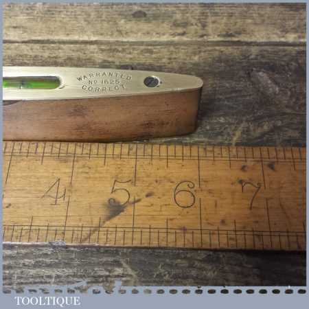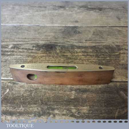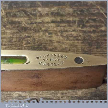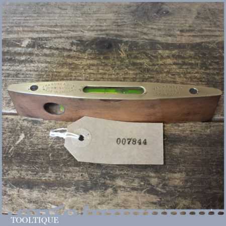 Vintage Rabone & sons No: 1625 6” mahogany and brass spirit Boat level in good used condition. Note: The level has not been tested and may require resetting in putty if intended for use.