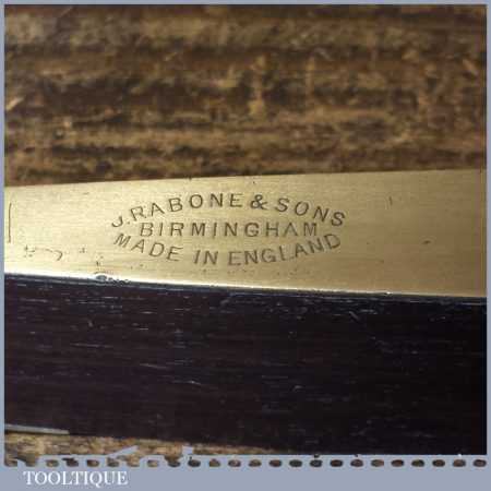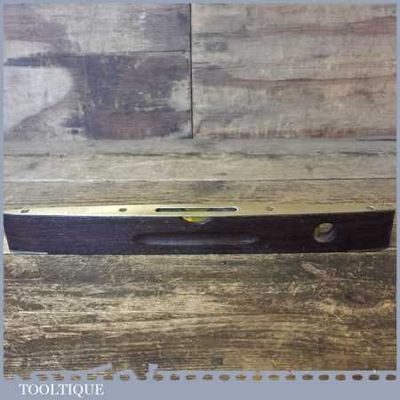 Vintage Rabone & Sons No: 1625 rosewood and brass 12” spirit level in good used condition. Note: The level has not been tested and may require resetting in putty if intended for use.