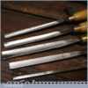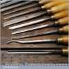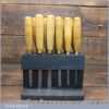 Vintage racked set of 12 No: matching J. B. Addis & Sons vintage wood carving chisels with ash handles in good used condition, fully refurbished sharpened and honed ready for use. These look to have their original handles (known design).